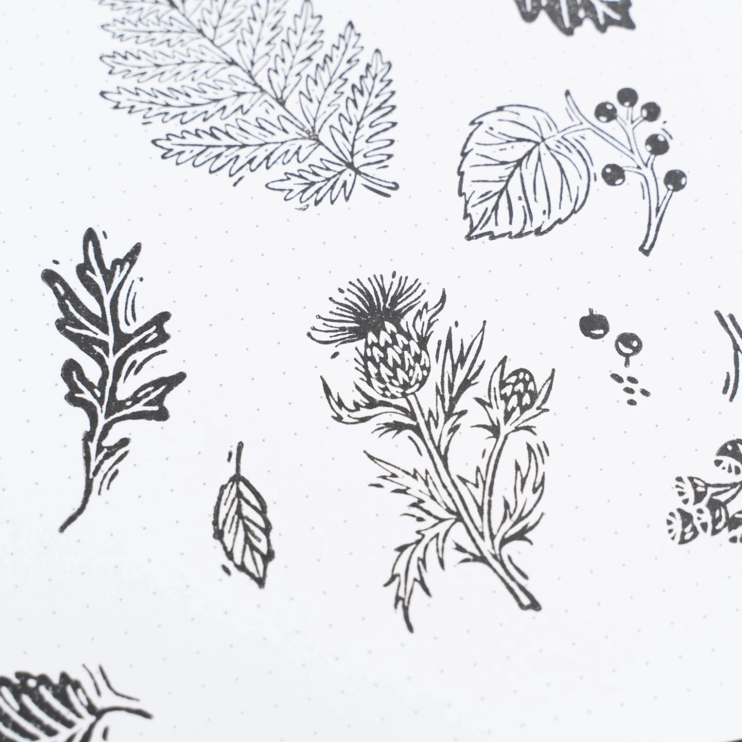 - Includes oak, maple, fern, pine, thistle, and acorn designs