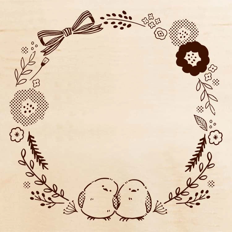 This rubber stamp feature original illustration molded in soft white rubber for easy inking and printing. The stamp is mounted on screen printed wood block.