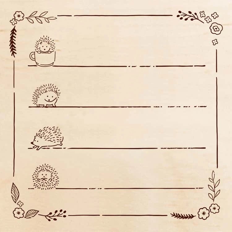 Cute Hedgie posing on the hand-drawn lines. This rubber stamp is perfect for making notes with your message on it.