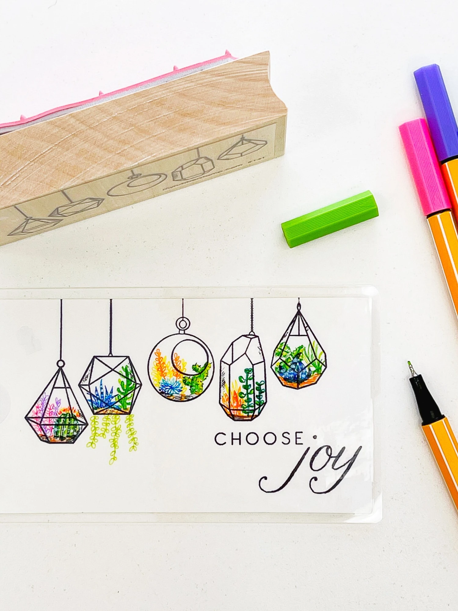 Hanging Terrarium Rubber Stamp, you can fill in your favorite plants, succulents and cacti in the terrarium, or use it as is =)