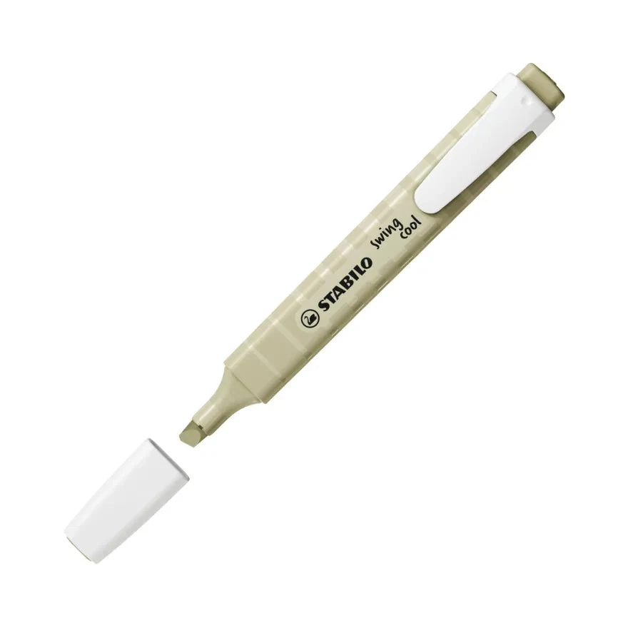 The trendy highlighter STABILO swing cool NatureCOLORS in a pack of 6 colors: mud green (137), earth green (163), umber (165), sienna (175), beige (186) and warm grey (193).