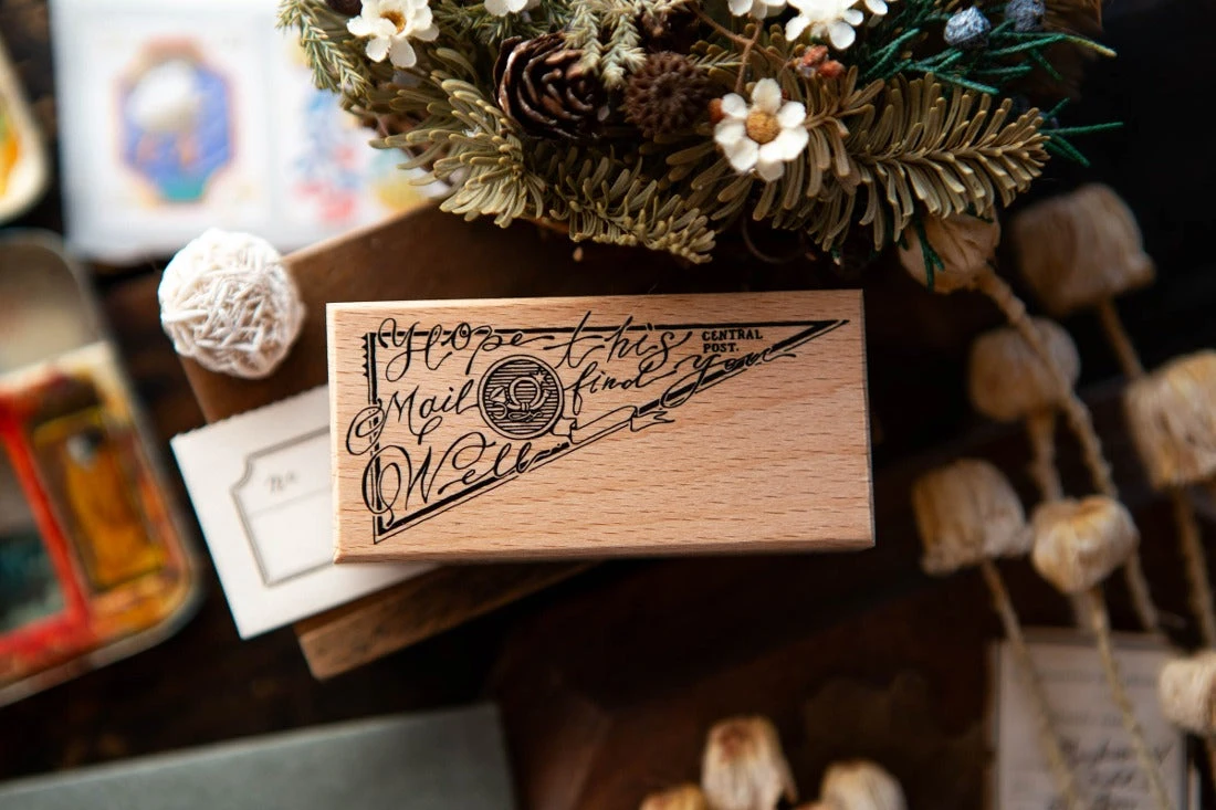 Inspired by vintage personal address stamps, the original written address is replaced with the English words “Hope this mail finds you well”, suitable for stamping on the corner of an envelope.