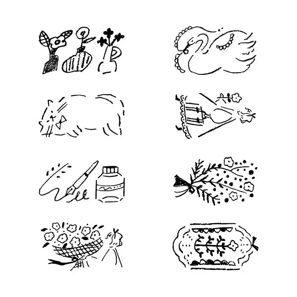 These stamps are a great tool for planning, journaling, letter writing, and note-writing, and because the ink is oil-based, you can color in and around the designs that you’ve stamped without fear of smearing or smudging the stamped ink.