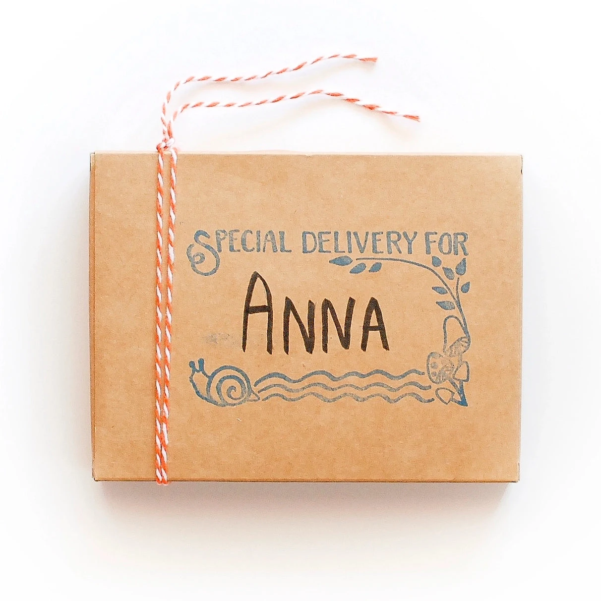 This Special Delivery For stamp is perfect for adding a little excitement to your snail mail envelopes or a great way to create custom gift tags! Hand-illustrated and made in the USA.