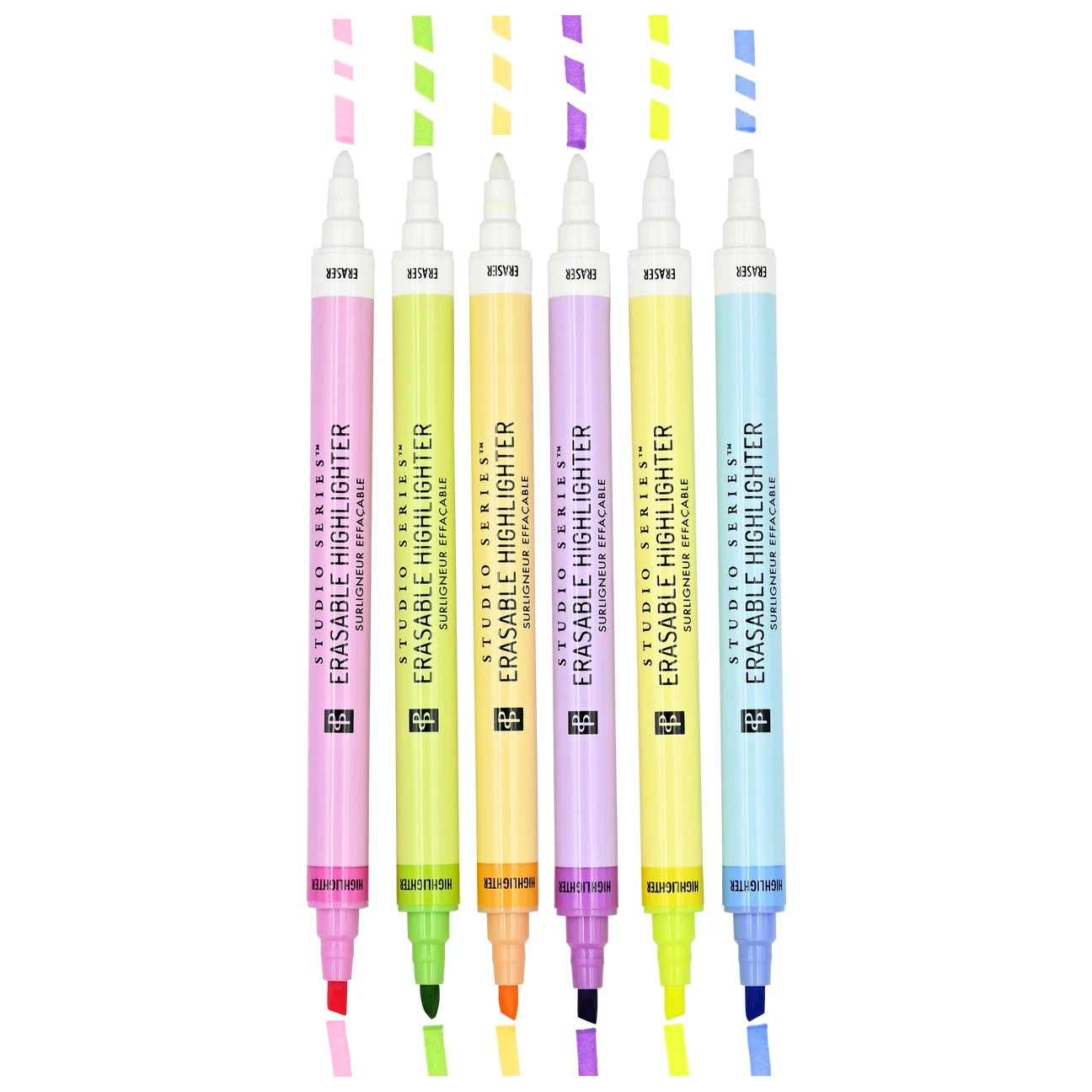Enjoy stress-free highlighting with this handy set of 6 Erasable Highlighters ! Highlight with 1 tip and erase with the other to make highlighting a breeze! Made a mistake? No problem, just erase! 6 vibrant, quick-drying colors won’t smear or bleed. Chisel-tip design makes it easy to both highlight and underline text. Great for studying, planning, dot journaling, note-taking, and more! Durable plastic case with snap-top opening protects your set on the go.